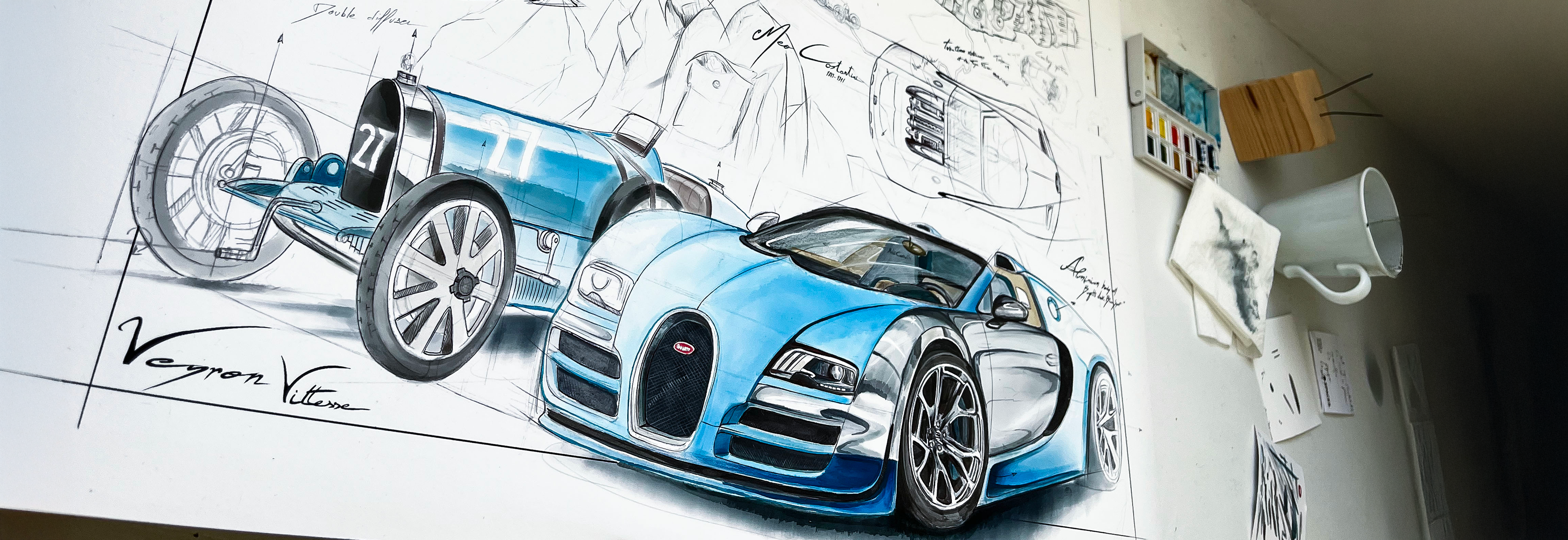 Originaire de Lyon, France. Designer automobile passionné depuis son plus jeune âge par l'art et la mécanique. En parallèle de son métier passionnant, il créer des oeuvres sur l'histoire des objets mécaniques iconiques de notre époque.