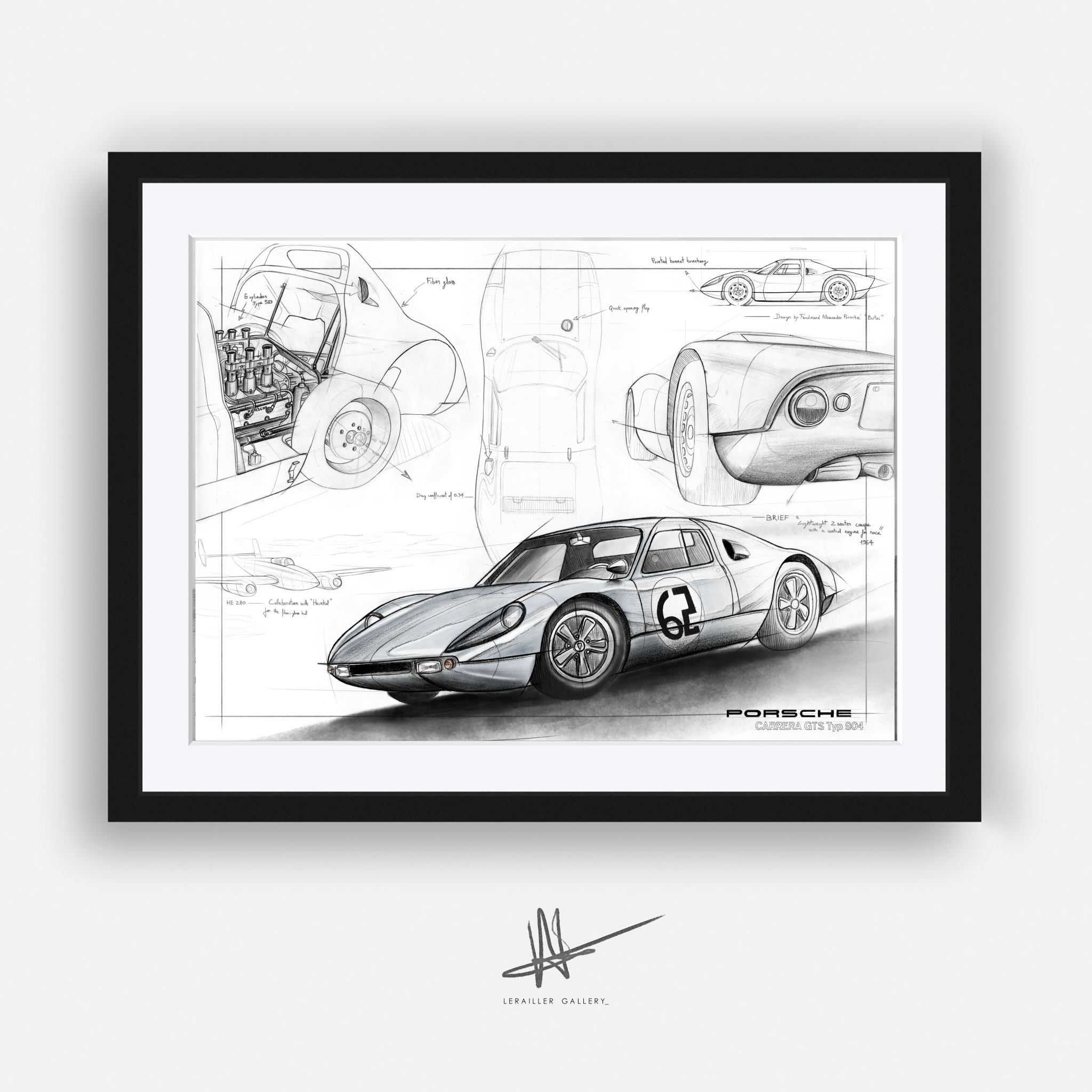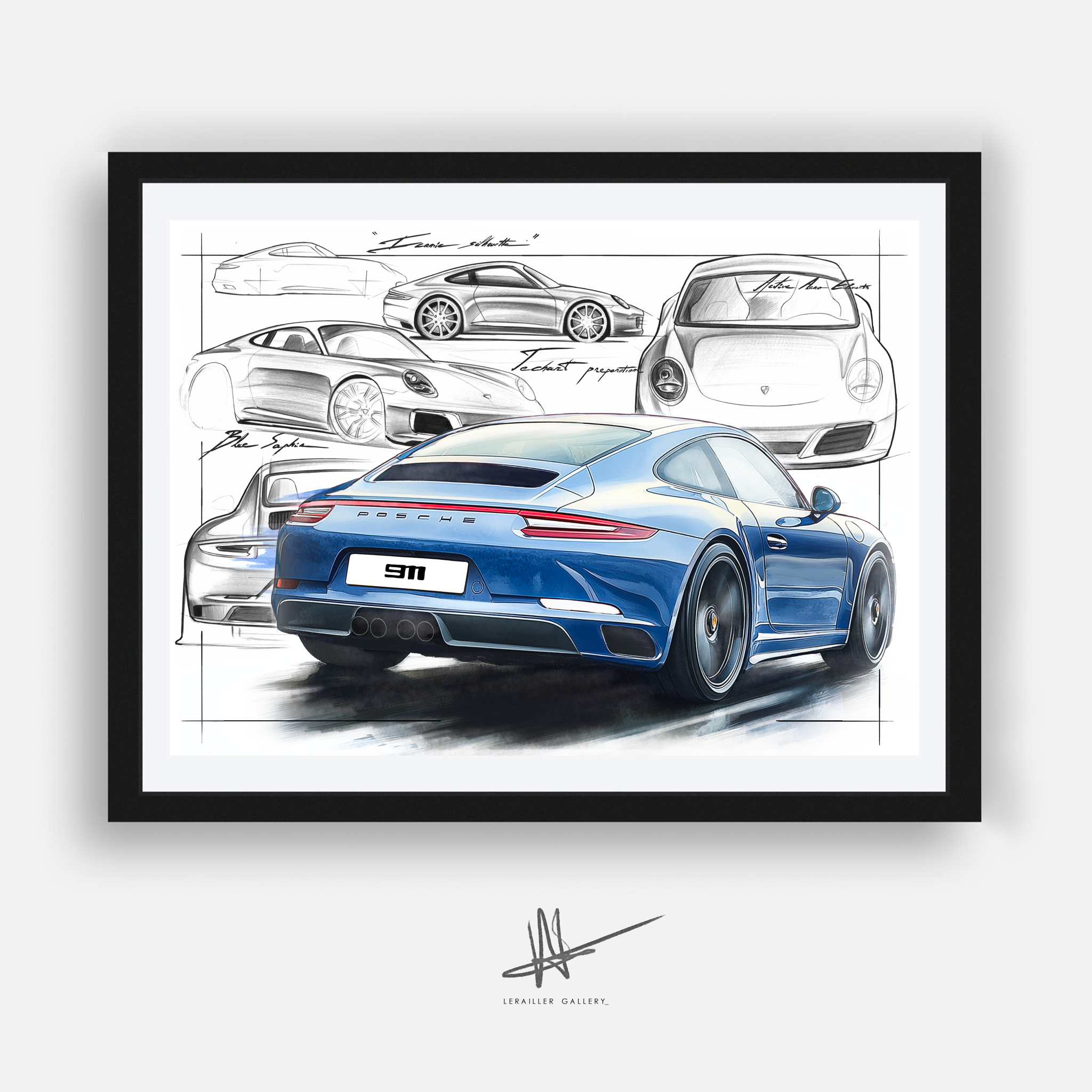 Collection d'oeuvre d'art et dessin inspiré par la marque Porsche.